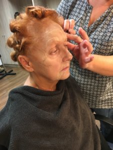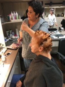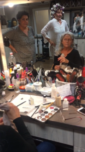 Nehéz helyzet volt, 10 évet öregedtem,mire megoldottam a problémát – szokták mondani, de ez persze nem igaz. Az ember nem öregszik ukk-mukk-fukk. Kivéve, ha színész. Akkor de. Akkor egy óra alatt akár 30 évet is kell. Kellene. Ha nem lenne olyan a bőre, mint egy kamasznak. Molnár Zsuzsinak olyan. Molnár Zsuzsinak nem lehet látványosan mélyíteni a ráncait, mert nincsenek mélyíthető ráncai. Arra készültem, hogy részt veszek egy izgalmas, jól dokumentálható átváltoztató show-ban, de az “ilyen volt, ilyen lett” döbbenete helyett azon keseregtünk, hogy hiába a speciális bőrösszehúzó, a professzionális smink, az ősz paróka, Zsuzsit legföljebb 10 évvel lehet korosítani, tovább egy perccel sem. Innen szép nyerni! Így tessék eljátszani a 91 éves dadát!